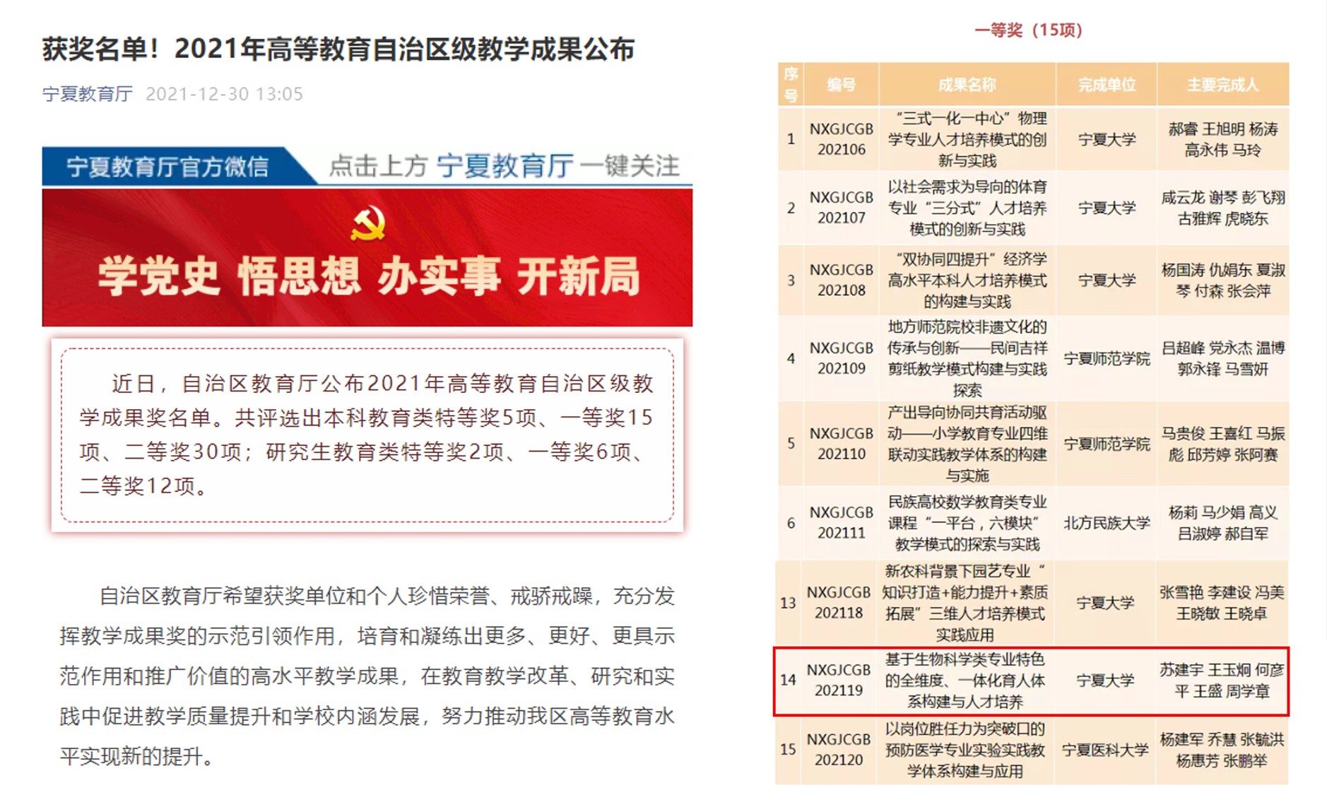 近日,自治区教育厅公布2021年高等教育自治区级教学成果奖名单,里番