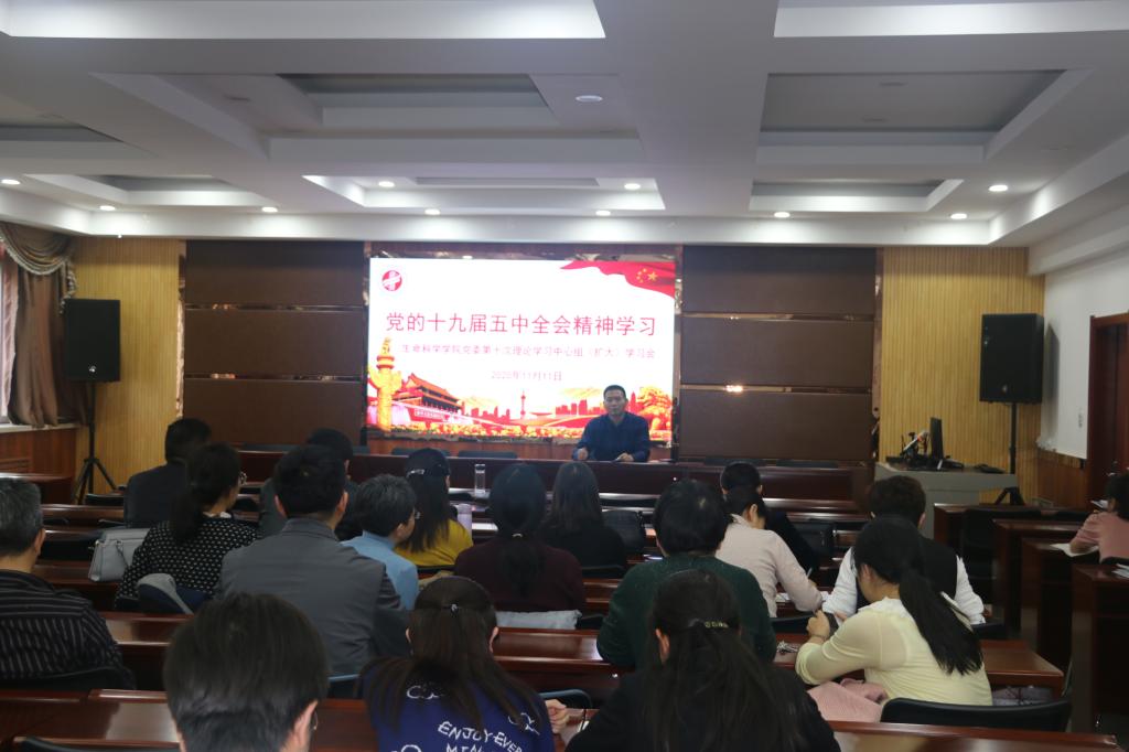 11月11日下午,学院召开党委理论学习中心组(扩大)学习会,专题学习党的十九届五中全会精神。院党委书记王彦庚主持学习会并讲话,中心组全体成员和全院教职工参加学习。