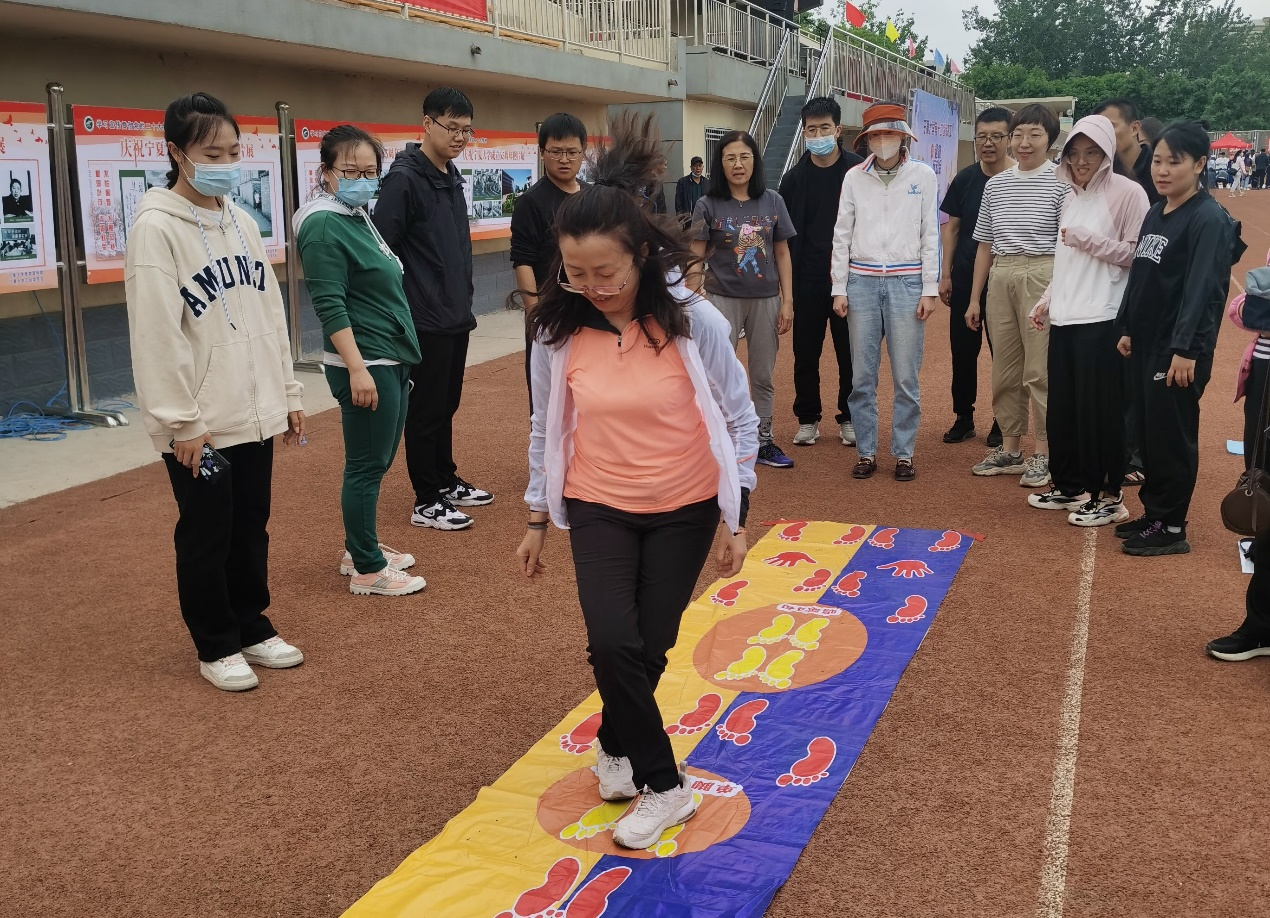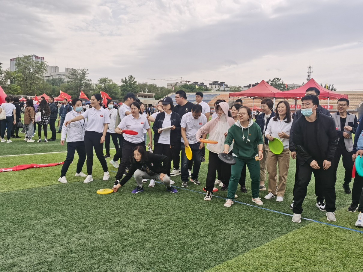 在邓光存书记、周学章副书记的带领和指挥下,20多名参赛教职工齐心协力、奋力拼搏,在一片呐喊助威声中顺利完成了“陆地冰壶”、“手忙脚乱”、“飞盘九宫格”、“合力筑塔”、“重走长征路”、“快乐大冲关”、“电臀达人”7个比赛项目。在比赛过程中,参赛教职工配合默契、相互鼓励、通力协作,在轻松愉快的氛围中,顺利完成了运动会所有的比赛项目。
