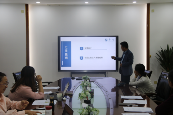 周续莲通过项目研究的背景、项目内容、取得的成果以及经验和推广价值、存在的问题和解决对策、项目经费方面进行汇报。杨易从项目团队成员围绕项目主题建设参与工作、课程群围绕项目主题建设开展工作、团队成员获奖成果以及团队下一步发展等方面展开汇报。李雅楠团队主要介绍了项目的成果及成效和项目应用的推广价值。辛国省通过三个方面项目背景、项目成果和项目存在的问题进行汇报。