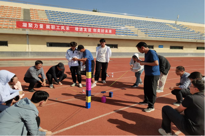 在邓光存书记的带领和全体参赛老师的共同努力下,顺利完成了铺路搭桥、趣味汉诺塔、手忙脚乱、合力筑塔、重走长征路、电臀达人、快乐大冲关等比赛项目。经过一个下午的激烈争夺,学院最终取得了“电臀达人”一等奖和“快乐大冲关”三等奖的好成绩。