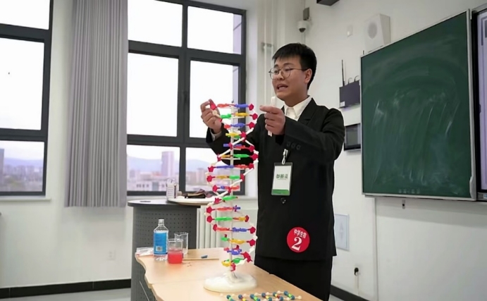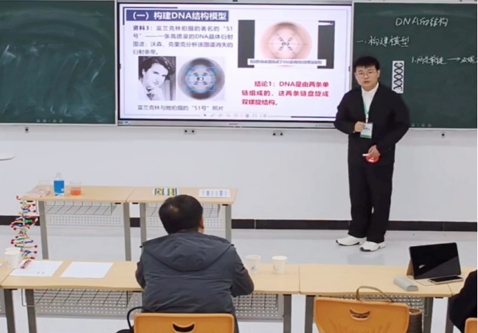 阳震同学以高中生物学必修二教材中“DNA分子的结构”一节为教学内容,凭借扎实的专业知识、先进的新课程理念、自信从容的教态、多元化的教学方法,在激烈的竞争中脱颖而出,体现出里番