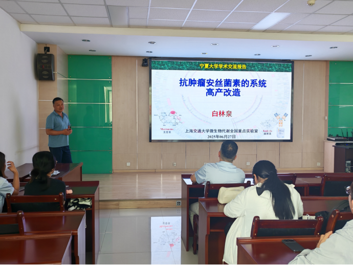 6月27日下午,上海交通大学生命科学技术学院微生物科学系主任周宁一教授、微生物代谢全国重点实验室副主任白林泉教授应邀为学院师生作专题报告,报告会由生命与食品学部副部长徐金瑞主持。