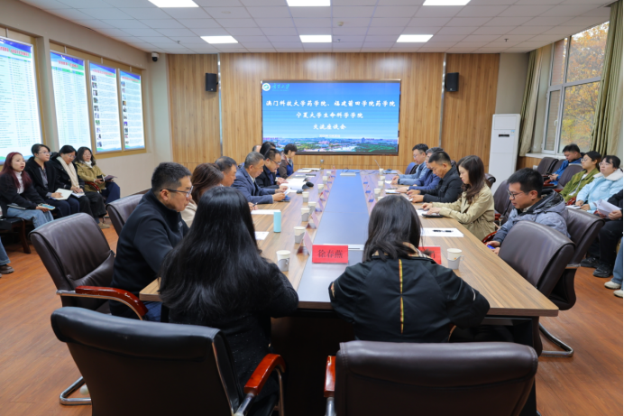 座谈会上,苏建宇院长首先代表学院对来访专家表示热烈欢迎,并从学院历史沿革、学科布局、师资力量、科研平台建设及人才培养等方面进行了详细介绍,同时表达了希望通过校际交流深化合作、共谋发展的良好愿景。随后,澳门科技大学药学院朱依谆院长围绕学院的学科优势、科研方向及国际合作项目展开分享。福建莆田学院药学院陈健敏院长介绍了学院在应用型药学人才培养及特色药材研究等方面的实践经验与成效。