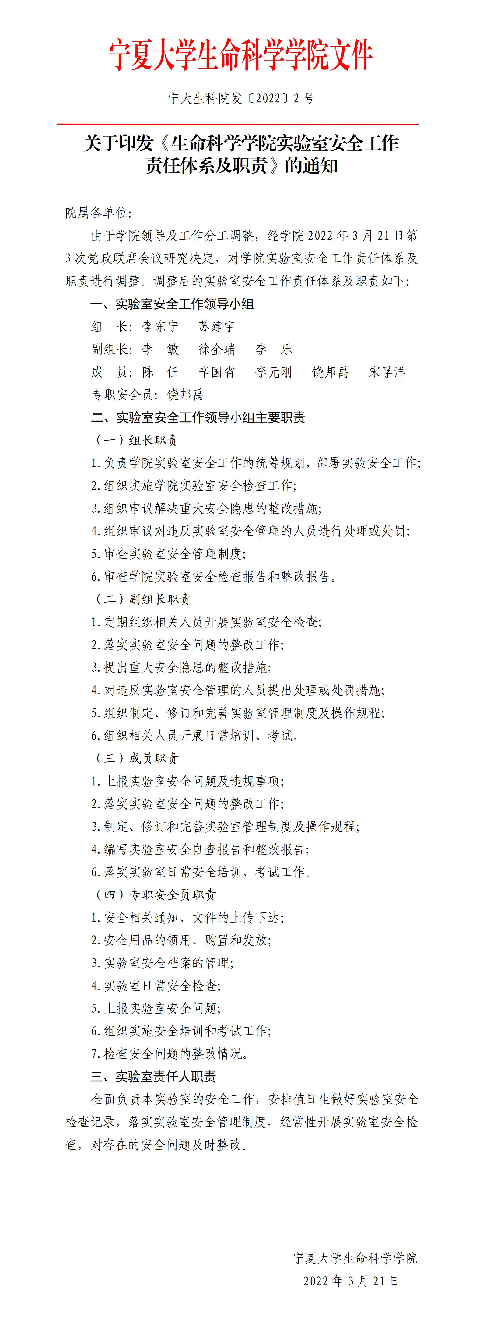 关于印发《里番 实验室安全工作责任体系及职责》的通知