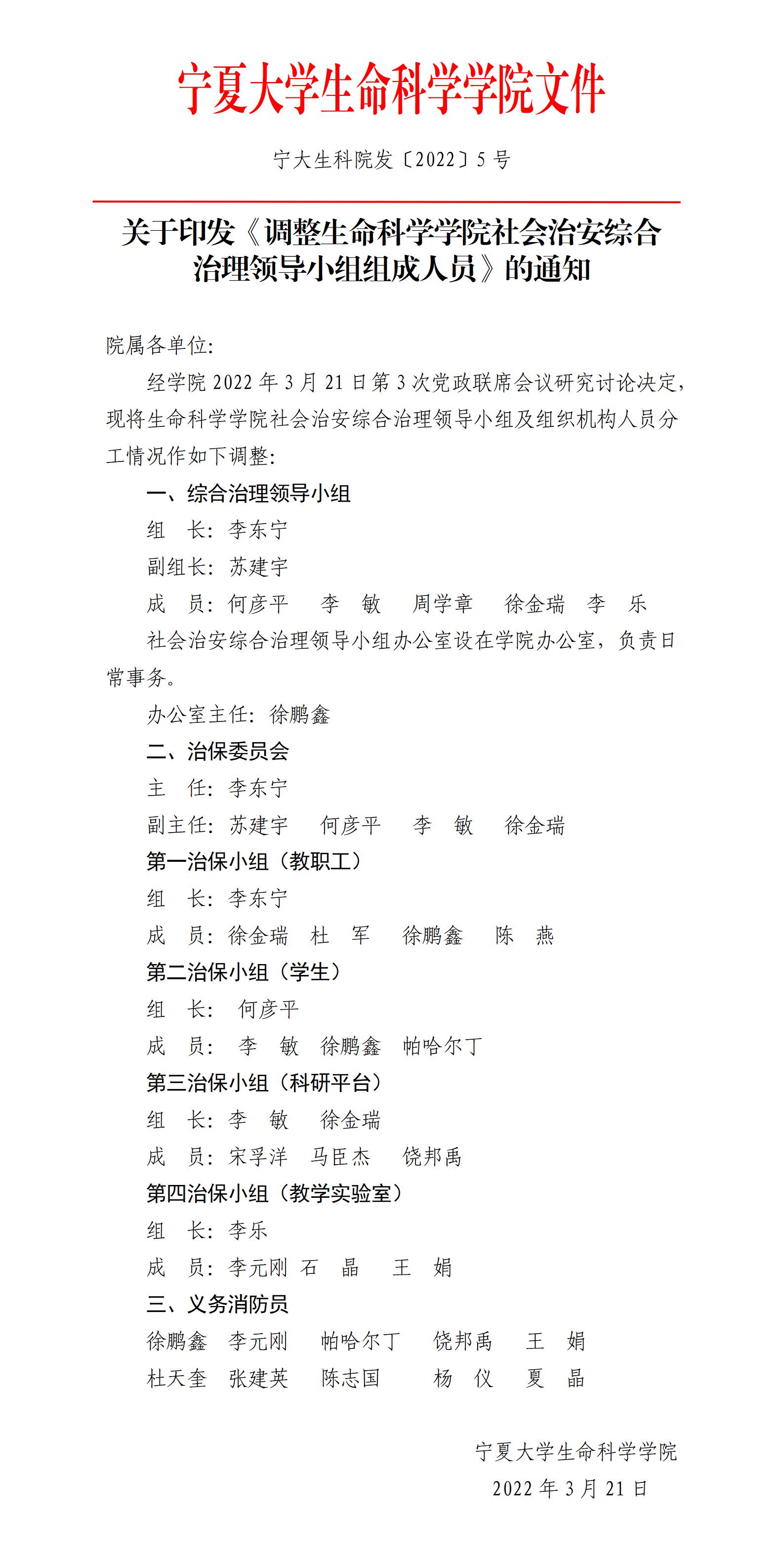 关于印发《调整里番 社会治安综合治理领导小组组成人员》的通知