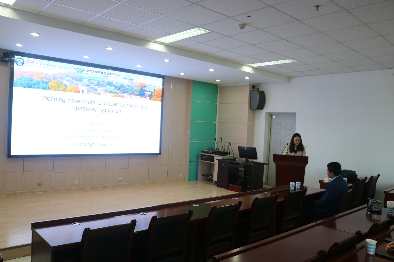 邀请武汉大学泰康医学院(基础医学院)的韩翰教授作题为“Defining novel metabolic cues for the Hippo pathway regulation”的学术报告。报告会由学院副院长李乐主持,学院教师、部分研究生参加了此次报告会。