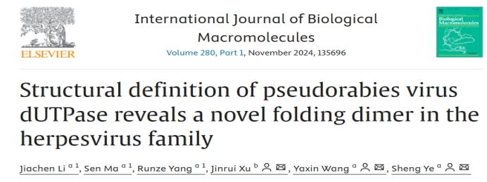 徐金瑞、天津大学王亚鑫及叶升共同通讯在International Journal of Biological Macromolecules(一区TOP)上在线发表题为“Structural definition of pseudorabies virus dUTPase reveals a novel folding dimer in the herpesvirus family”的研究论文。
