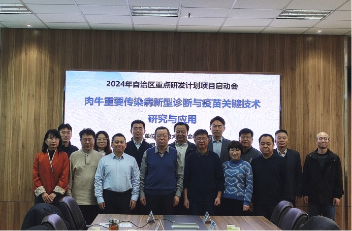 教授李勇、中国农业科学院兰州兽医研究所研究员周继章联合参与的2024年宁夏回族自治区重点研发计划项目“肉牛重要传染病新型诊断与疫苗关键技术研究与应用”启动会在学院顺利召开。