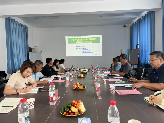牵头承担的2025年自治区重点研发计划项目“宁夏枸杞根腐病微生态健康调控关键技术研究与示范”启动会在宁夏杞鑫种业有限公司顺利召开。项目联合南京农业大学、宁夏杞鑫种业有限公司、山东蓬勃生物科技有限公司共同实施。