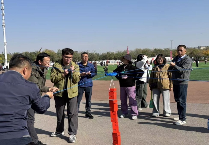 上午的团体赛项目中,学院教师团结协作、奋勇争先,在“合力建塔”“托球竞走”“蒙眼吃香蕉”等环节中密切配合,展现出蓬勃朝气与集体智慧。现场气氛热烈,掌声与欢笑不断,充分体现了“全民健身+校园文化”融合推进的生动实践。