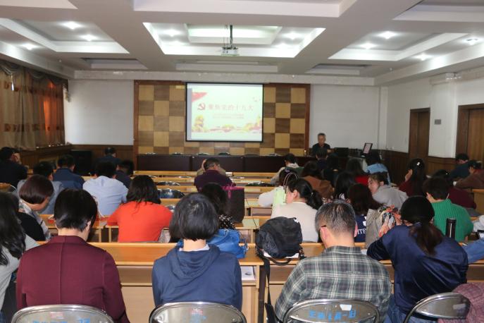 在学院二楼报告厅院举办“十九大精神”和《新党章》专题讲座,沈岩东书记为全院教职工做了“十九大精神”学习专题辅导,对新党章进行了深度解读。