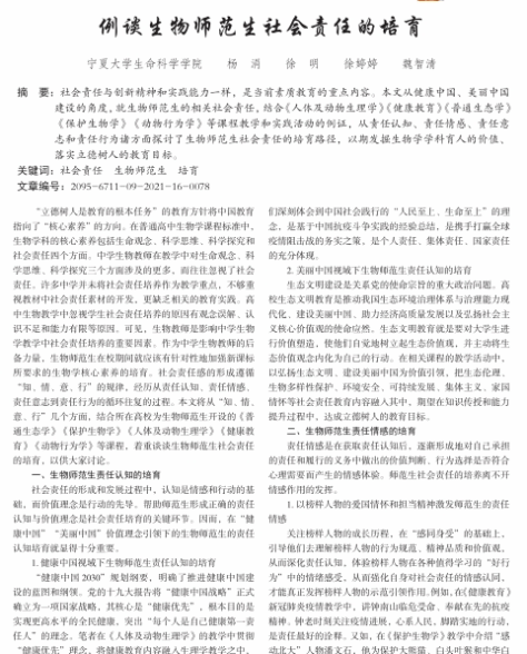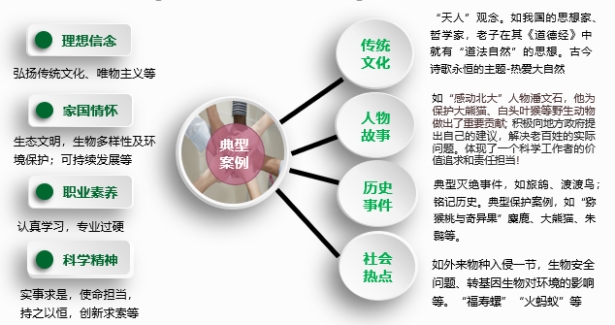 对大学生进行生态文明及生物多样性保护的教育可以起到推广辐射的作用,他们可以将这种思想潜移默化地带入到中学的课堂、中学生的生活及学生的社会关系中。为同学们未来步入社会、投入到祖国建设的征途中弘扬生态文明、建设美丽中国定下基调。力求知识传授、能力培养和价值引领同步提升,达成立德树人的教育目标。