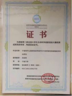 团队成员指导学生积极参与保护生物多样性的相关研究,并多次获得奖励,其中杨涓、郑国琦指导的大创项目“宁夏银北贺兰山东麓林田湖草区土壤盐分与植物分布关系的研究”,获得了全国大学生生命科学竞赛指导教师三等奖(科学探究类,2021.09),郑国琦指导学生作品“宁夏南华山国家级自然保护区中段阴坡和阳坡植被多样性研究”获第二届全国大学生生命科学创新大赛优秀成果奖指导教师三等奖(创新类2019)。牛东玲老师指导的学生社团“鸢尾花舍”是“萃葩网—中国大学植物网联盟”在里番